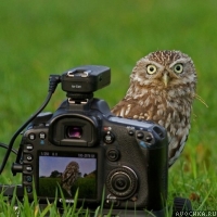 Забавная аватарка с совой с фотоаппаратом. Совы - очень умные и загадочные птицы. За ними интересно наблюдать. Интересный факт о совах: эти ночные хищники могут поворачивать голову на 270 градусов, благодаря тому что у них имеется 14 шейных позвонков (у человека из всего 7). Аватар с совой подойдет любителям этих ночных хищных птиц.