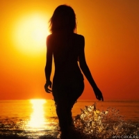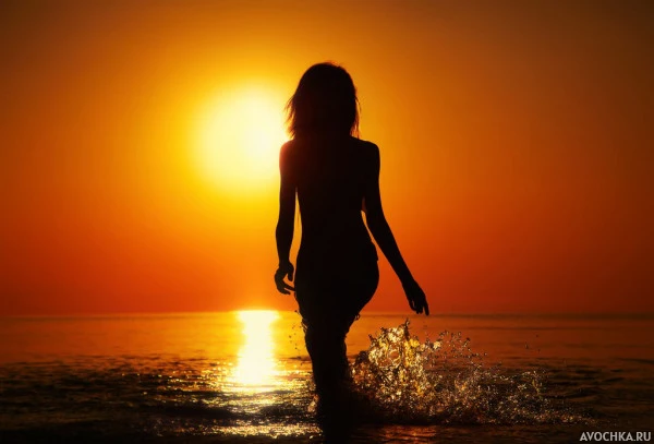 Картинка с силуэтом девушки на фоне моря