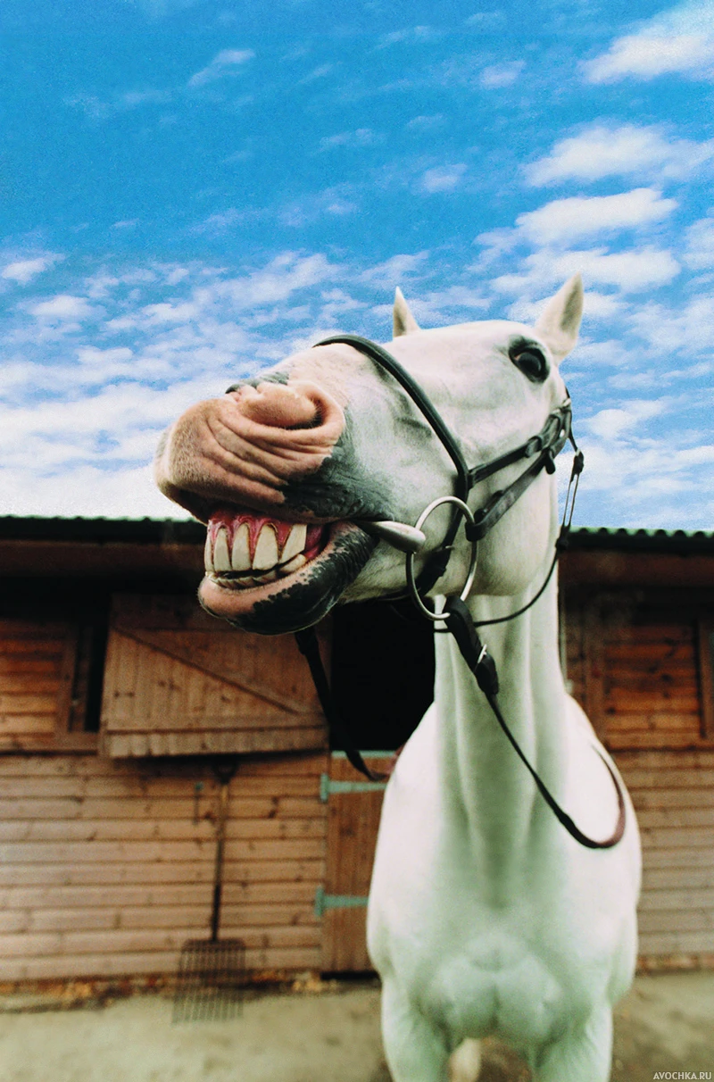 А вы знали что лошади умеют смеяться? Не зря есть такое выражение "Ржет как конь". Когда лошадь ржет, это действительно смешно. Если вам нравятся позитивные животные, то фото со смеющейся лошадью вас обязательно улыбнет. Прикольная картинка с белой улыбающейся лошадью.