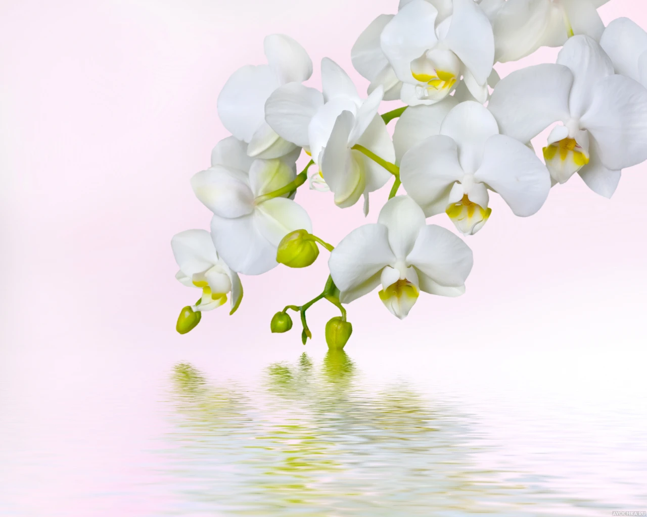 Одним из самых таинственных и загадочных цветов считается орхидея. С ним связано немало легенд и суеверий. На фото прекрасная орхидея с нежными белыми лепестками, которые тянутся к воде. Скачать аватарку с орхидеей.