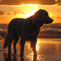 Картинка с голден-ретривером на закате