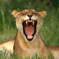 Оригинальная картинка с зевающей львицей, которая походу не выспалась, так как всю ночь охотилась, чтобы раздобыть себе еду. Известно, что наибольшая активность у львов наступает с наступлением темноты и до рассвета. Скачать картинку с зевающей львицей.