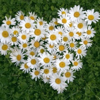 Картинка с прекрасными полевыми ромашками, которые удивительно необычно выложены на траве в форме сердца. Простая и в то же время необыкновенно красивая цветочная композиция. Скачать аватарку с ромашками в виде сердца.