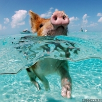 Прикольная картинка с плавающим поросенком в море. Есть такой миф, что свиньи очень не поворотливы и не умеют плавать. На самом деле это не так. Они очень хорошо плавают и по словам ученых, могут даже нырять за рыбой на глубину до 15 метров. Скачать аватарку с поросенком в воде.