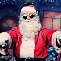 Прикольная картинка с забавным дедом морозом в очках-сердечках и в наушниках. Деды морозы бывают разные, например этот решил вспомнить бурную молодость и показать всем насколько он крут. Скачать аватарку на тему нового года с продвинутым дедом морозом.