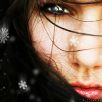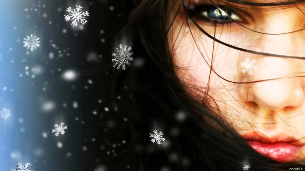 Скачать лучшие зимние аватары с девушками. Фото с красивой брюнеткой со снежинками.