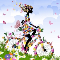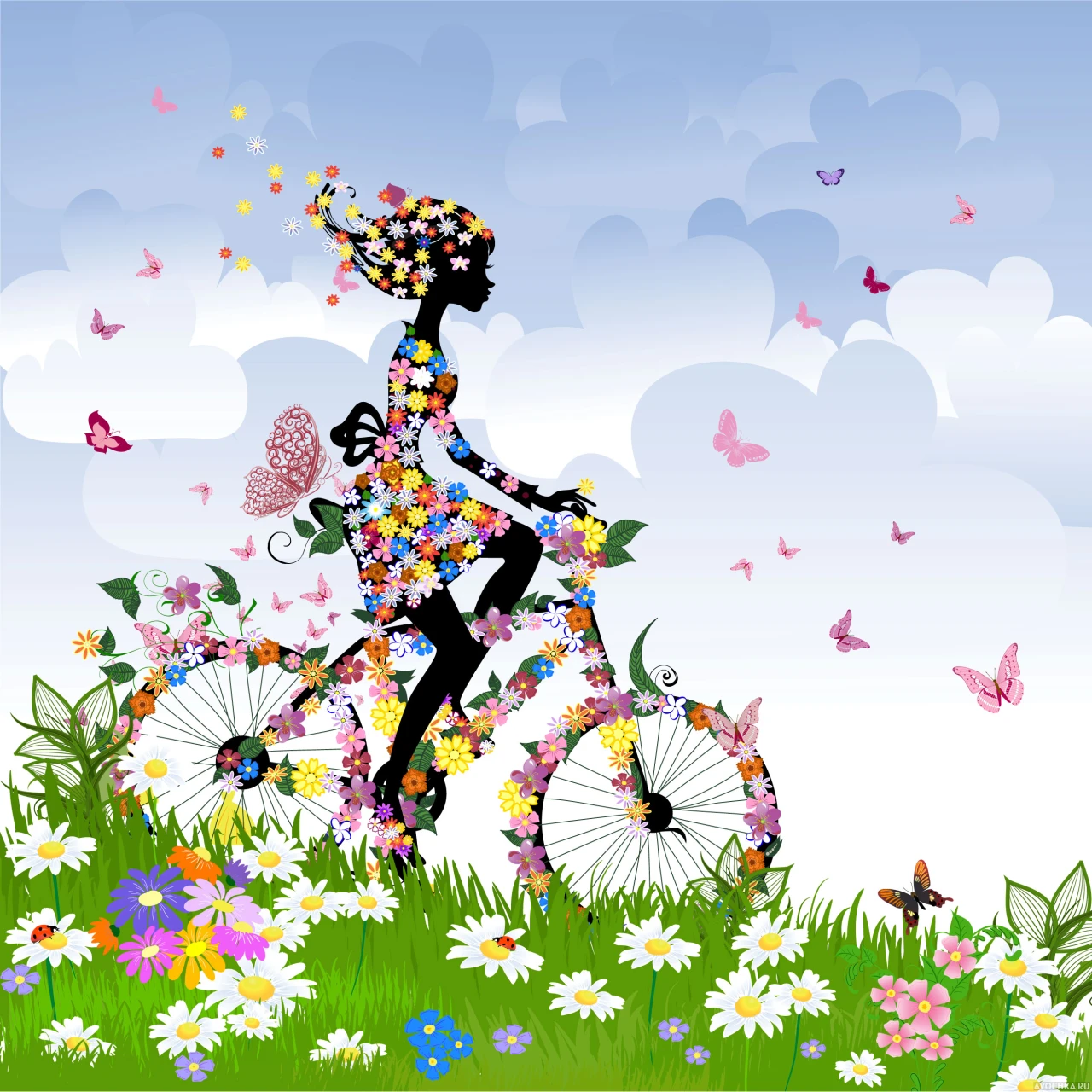 Самая цветочная аватарка с девушкой на велосипеде. Красивая картинка с девушкой на велосипеде в цветах и бабочках.