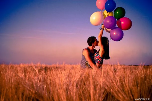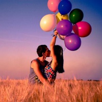 Аватарка с красивой влюбленной парой, в руках у которых разноцветные воздушные шарики. Целующиеся парень и девушка счастливы вместе, ведь их ждет светлое совместное будущее. Фото влюбленных излучает радость и дарит положительные эмоции. Скачать аватар на тему любви.