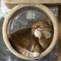 Фото с котом, который старательно вылизывает лапку, лежа в круглом кошачьем домике на фоне окна. Как же классно наблюдать за своими домашними питомцами, особенно когда они такие пушистые и милые. А тем, у кого домашних животных нет, остается только скачать картинку с чистоплотным котом и лицезреть это на экране монитора.