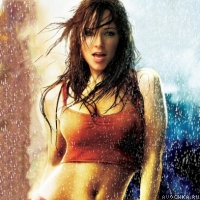 Фото привлекательной девушки в коротком топике под капельками дождя. Девушка на картинке - главная героиня известного американского комедийного фильма "Шаг вперед 2" - уличная танцовщица Энди. Скачать фото на аватар с девушкой из фильма.