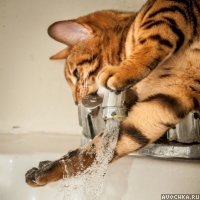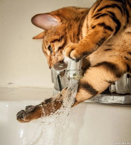Аватары с забавными животными. Фото с рыжим котом, который моет лапы под краном с водой.