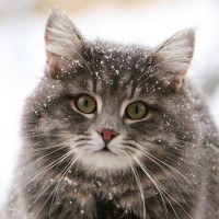 Картинка с очаровательной кошечкой, которая вышла на зимнюю прогулку. Кошки настолько милые и симпатичные животные, что всегда очень хорошо получаются на фото и очень любят позировать. В подтверждении этому стоит только посмотреть на фото выше. Красивый взгляд и маленькие снежинки, падающие на голову придают нежность и легкость. Если вы любите няшных пушистых животных, то можете скачать картинку с кошкой на аву или как обои на рабочий стол.
