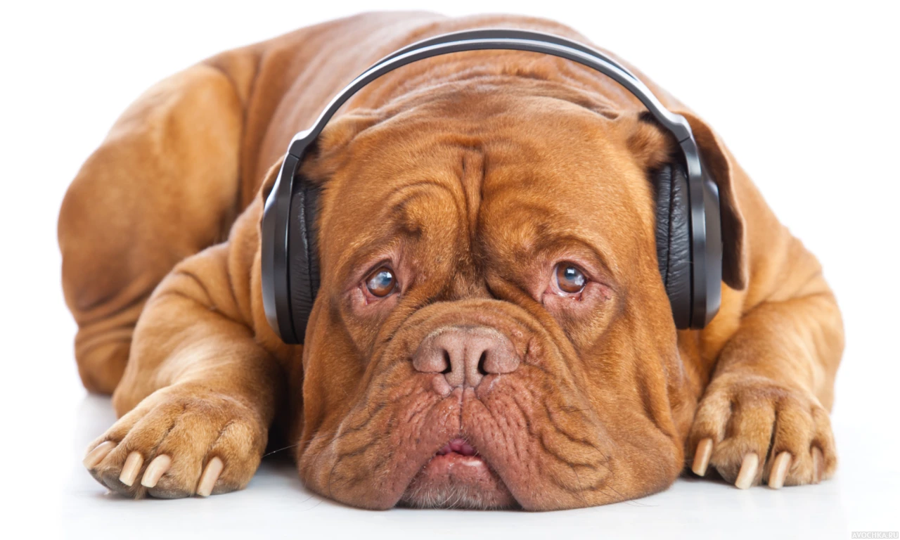 Собака любит слушать музыку. Аватарка с псом в наушниках. Самые прикольные картинки с животными.