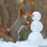 Зима - прекрасная пора, можно лепить снеговиков, играть в снежки или же наслаждаться зрелищем, как забавная белочка кусает нос-морковку снеговику. Прикольная картинка подойдет на аву в контакте или фото с белкой можно скачать как обои на рабочий стол. Картинка любому поднимет настроение своим позитивом в холодное зимнее время года