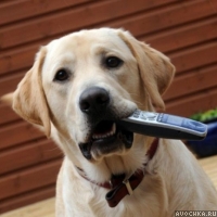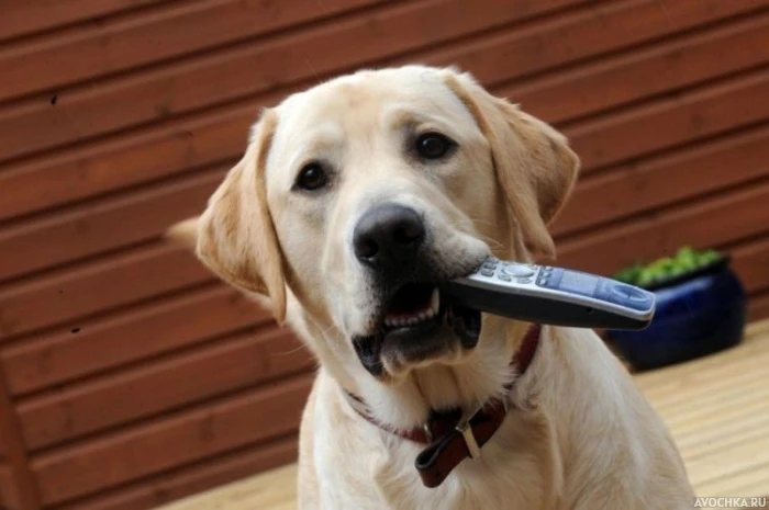Забавная картинка с палевым лабрадором, который держит в пасти телефонную трубку. Хозяевам можно не беспокоиться о повреждении телефона, так как у этой породы собак мягкая пасть. Известно даже, что лабрадоры могут нести в зубах яйцо, не разбив его. Скачать фото лабрадора можно на аву, а также эта картинка подойдет как обои на рабочий стол.