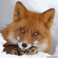 Картинка с обыкновенной рыжей лисой, которая лежит на снегу. Лисы - необыкновенно красивые животные. Хитрый и проницательный взгляд, который привлекает внимание. Красивое фото с лисицей подойдет на аватар в контакте или для форумов или блогов с животными.