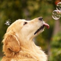 Красивое фото голдена с мыльными пузырями. На фото изображен очаровательный золотистый ретривер, который ловит мыльные пузыри. Это лопающиеся мыльные пузырики отлично заряжают позитивом и поднимают настроение. Скачать картинку с голденом на аву.