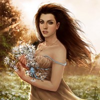 Рисунок с девушкой с длинными каштановыми волосами с ромашками в руках. Девушка стоит в поле, полностью усеянным простыми, но в тоже время красивыми цветами ромашками. Картинка с нарисованной девушкой подойдет на аватарку тем представительницам прекрасного пола, которые любят легкость и беззаботность.