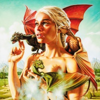 Картинка с красивой девушкой Дейнерис из популярного фильма "Игра престолов". На рисунке девушка без одежды, держит у себя на плечах и в руке маленьких милых дракончиков. Скачать рисунок с девушкой из Игры престолов.