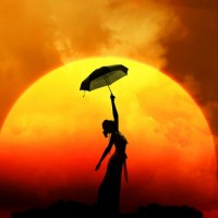 Картинка с силуэтом девушки в длинном платье, которая стоит с зонтом, вытянув его вверх. Девушку окружает красивый закат и дымка из облаков. Картинку удобно ставить в качестве аватарки в социальных сетях, т.к. на фото не видно лица. Скачать фото с силуэтом девушки на аву.