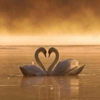 Картинка с двумя белыми лебедям, которые склонились друг к другу в форме сердца. На романтическом фото видно, как двое влюбленных лебедей любуются друг другом на фоне заката. Лебеди - красивые птицы, которые издавна олицетворяют любовь и верность. Картинка с лебедями подойдет в качестве аватара людям, которые в данный период времени испытывают чувство влюбленности.