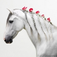 С давних времен известно одно очень интересное явление. По утрам заходя в конюшню, можно заметить у лошади заплетенные сами по себе косички. Они бывают красивые, аккуратные, а бывают в разных петлях, которые за день сложно развязать. Существует поверье, что косички плетет маленький хищный зверек - ласка. Она, ищет в гриве лошади кристаллики соли, которые образуются на коже от пота. И маленький зверек, цепляясь за гриву лошади, случайным образом спутывает волосы и "заплетает" их в косички. Но на картинке у лошади косички - явно дело рук человеческих, потому как никакая ласка не способна произвести такую красоту. Скачать картинку лошади с косичками.