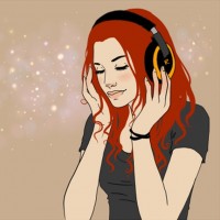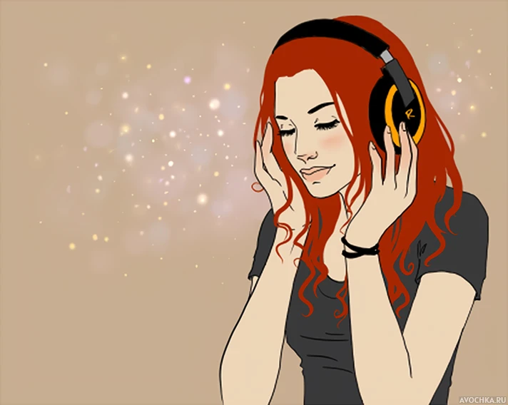 Рисунок с девушкой в наушниках. На картинке девушка с красными волосами наслаждается музыкой, которая звучит из наушников. Девушка поддерживает руками наушники, закрыв глаза. Рисунок с девушкой в наушниках подойдет в качестве аватарки для меломанов и просто любителей хорошей музыки.