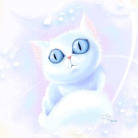 Красивый рисунок белого кота с большими голубыми глазами. Скачать картинку нарисованного кота можно на этом сайте в разделе животных.