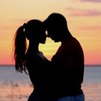 Фото с силуэтом парня и девушки на закате. На фото влюбленная пара стоит на берегу моря в обнимку. Парень и девушка смотрят друг на друга склонив головы друг напротив друга. Романтическое фото с силуэтом влюбленной пары можно скачать на аву людям, которые в данный период времени проживают начальный период отношений.