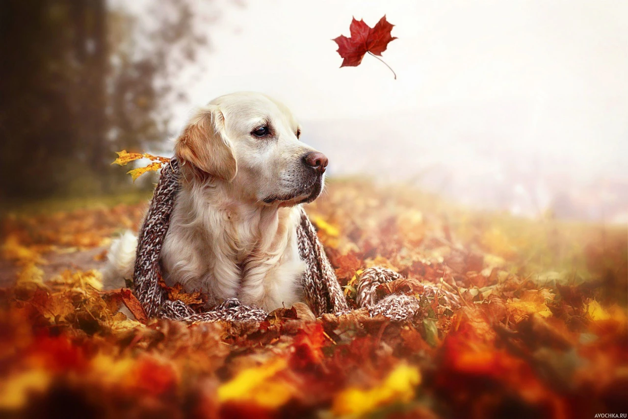 Осеннее фото с ретривером