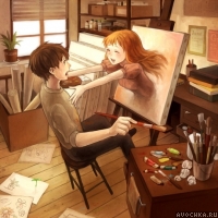 Необычная история у этой картинки. Художник нарисовал девушку, но сам того не ожидая, картина ожила. Девушка начала тянуться к художнику, тот в свою очередь очень испугался. Скачать картинку в стиле аниме.