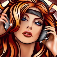 Рисунок с девушкой в наушниках. На картинке девушка с голубыми глазами и ражими развивающимися волосами с наушниками на голове. Яркая картинка с девушкой в музыкальном стиле понравится меломанам. Скачать рисунок с девушкой в наушниках на аву в контакте.