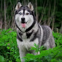 Фото с хаски в лесу. На картинке собака удивительно красивой породы - хаски с гетерохромией. Так похожа на волка, грациозность, красота, мощность. Но кроме сходства во внешности с волками у них мало, что общего. Это милые домашние собаки, очень дружелюбные к людям, умные. Собаки породы хаски требуют значительных физических нагрузок и обязательно груз за спиной. Поэтому не стоит заводить людям хаски, если они ограничены во времени и не способны дать этим собакам достаточных физических упражнений. Скачать фото с хаски в лесу.