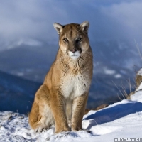 Картинка с необыкновенно красивой пумой, которая сидит на снегу и скорее всего мечтает о тепле и южных странах. Скачать картинку с пумой на снегу можно на этом сайте.