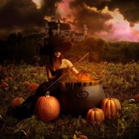 Картинка с девушкой ведьмой. Совсем скоро праздник Halloween, а это значит, что пора подумать о том, какую картинку в стиле Дня всех Святых поставить на аватарку. На фото изображена девушка в костюме ведьмы, кругом ее окружают тыквы, а сама девушка варит зелье в котле. На ведьме надета маска, поэтому половину лица не видно. Скачать фото с ведьмой.