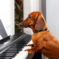 Прикольной фото с собакой за пианино. Собаки достаточно умные животные, их можно многому научить. Например такса, изображенная на картинке умеет играть на рояле и даже иногда дает концерты своему хозяину. Картинка интересна тем, что не каждый день увидишь собаку, которая сидит за фортепиано. Скачать фото с собакой за роялем.