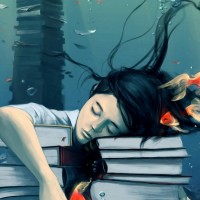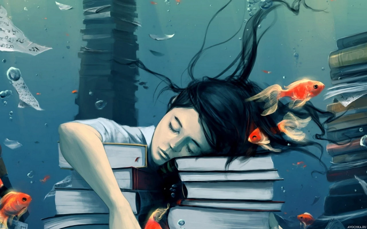 Рисунок с девушкой с книгами