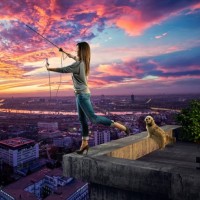Необычная картинка с девушкой на крыше со спины, которая держит антенну и ловит сеть. Пёс в это время наблюдает за хозяйкой и внимательно следит за ее действиями. Люди, оставшиеся без сети в интернете могут идти на отчаянные меры, например как девушка на картинке с антенной на крыше. Это конечно впечатляющее зрелище, красивый закат и девушка на каблуках на краю крыше, но все же такие действия опасны для жизни. Фото с девушкой с антенной на крыше подойдет на аватарку авантюристкам и любительницам приключений. Скачать картинку с девушкой со спины на краю крыши.