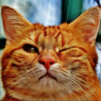 Фото с прикольным рыжим котом с подмигивающим глазом. На картинке изображен рыжий кот, который сидит возле сети у окна и подмигивает глазом. Скорее всего кот еще не до конца проснулся и наполовину еще спит, поэтому это забавно выглядит, будто бы кот подмигивает. Скачать фото с прикольным котом на аву.