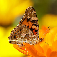 Фото с бабочкой среди желтых цветов. На картинке изображена бабочка, которая сидит на желтом цветке и опыляет его. Красивое фото на тему природы можно скачать бесплатно на этой странице и в разделе "природа".