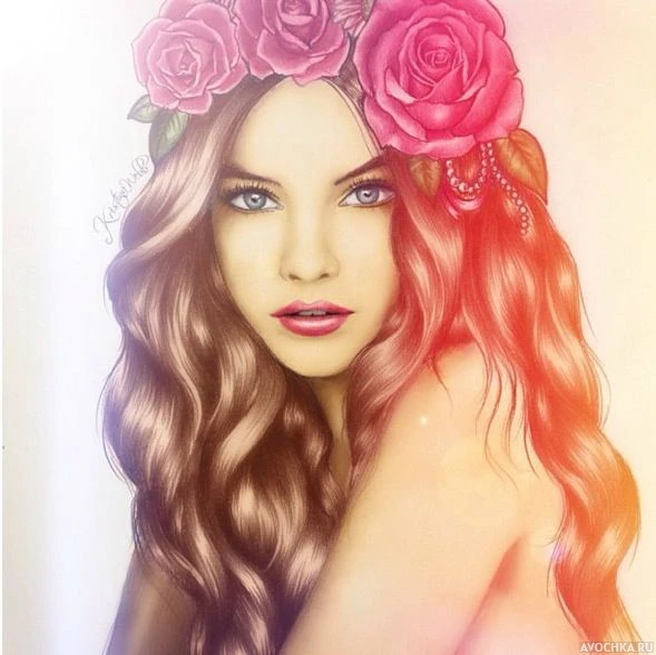 Рисунок с девушкой с цветами в волосах