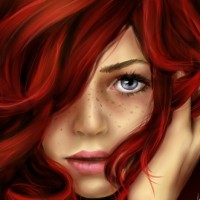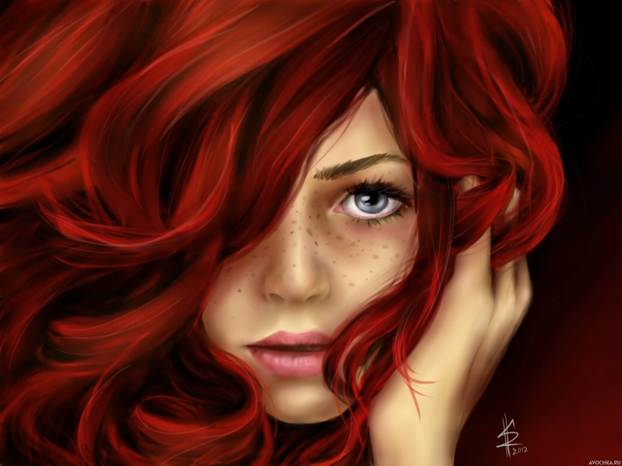 Картинка с рыжей девушкой на аву. На рисунке девушка с ярко-огненными красными волосами с веснушками на лице и красивыми голубыми глазам. Раньше в древние времена народ очень боялся девушек и женщин с рыжим цветом волос, так как считали их ведьмами. Сейчас же есть популярное выражение, что "у рыжих нет души". Девушки с рыжими волосами обычно яркие и темпераментные личности с непростым характером. Скачать картинку с рыжей девушкой на аву.