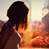Фото с девушкой в профиль у окна. На картинке девушка с короткой стрижкой в белой майке стоит в профиль возле окна. На улице за окном идет дождь, погода оставляет желать лучшего. На фото лица девушки не видно, поэтому картинку смело можно забирать себе на аву в контакте.