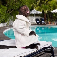 Крутая обезьяна решила развлечься по-человечески в халатике возле бассейна. Фотографии обезьян, которые знают толк в отдыхе