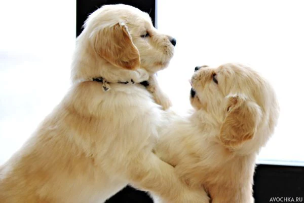 Самые дружелюбные щенки прекрасной породы голден-ретривер. Картинка с забавными щенками подойдет людям, у которых мягкий характер. Сочетая в себе нежность и игривость, этот аватар поднимет вам настроение своей добротой. Картинка с щенками ретривера отлично подходит для форумов и скайпа. Также вы можете скачать аватар себе на компьютер как фото забавных животных.