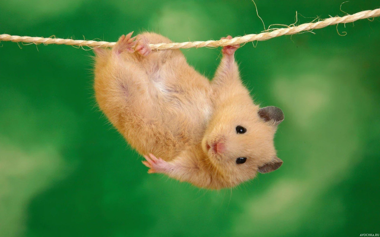 Прикольная картинка с хомяком на аву. На фото изображен прикольный хомячок, который висит на веревке, держась за нее лапками. Скачать забавную картинку с милым хомяком на веревке.
