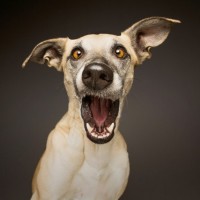 Картинка с эмоциональной собакой. На фото изображен прикольный пёс с открытым ртом, который судя по выражению морды испытывает яркие эмоции. Скачать фото с забавной собачьей мордой.