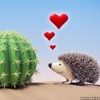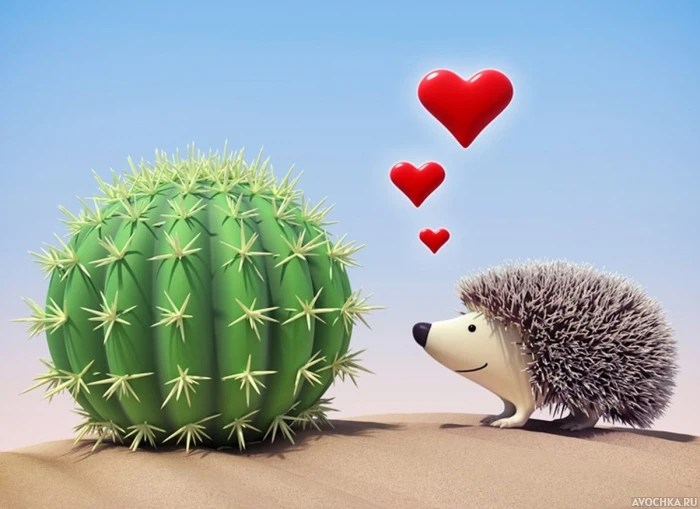 Картинка с ёжиком, который влюбился в кактус. Вот такая вот колючая любовь бывает. Скачать картинку с влюбленным ёжиком.