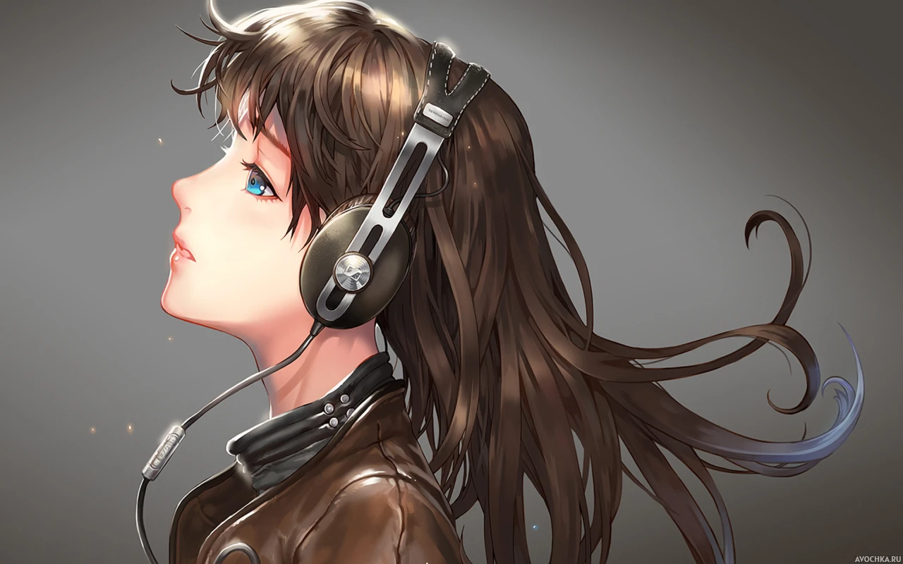 Рисунок с девушкой в наушниках в стиле аниме. На картинке девушка с красивыми голубыми глазами в наушниках слушает музыку. Картинка с девушкой подойдет на аву в контакте любителям аниме. Скачать картинку аниме с девушкой в наушниках.