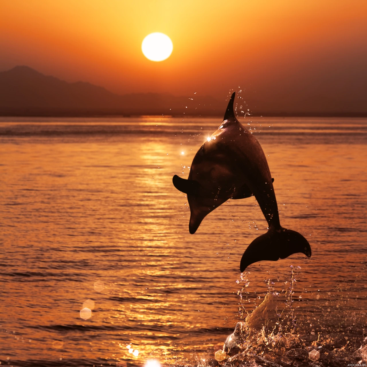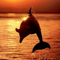 Силуэт с дельфином над морем в прыжке во время заката. Необыкновенно красивая картинка с силуэтом дельфина, который прыгает над морем, освещаемым заходом солнца. Скачать фото с силуэтом дельфина на закате.